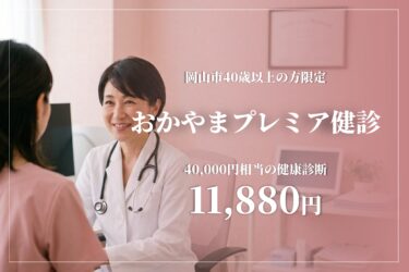 岡山市の方限定!人間ドック相当の検査を格安で受けられる特別健診! 《新着情報!2026年4月10日時点》26年度おかやまプレミア健診は4月15日受付開始予定!26年度より、新コース「おかやまプレミア健診プラス」が追加されました!胃カメラや腹部エコー、肺機能検査などを含む、人間ドックのフルコースに近い内容(約60,000円相当)を、27,000円(税込29,700円)で受診できる大変お得なコースです […]